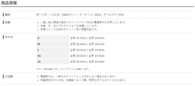 ・人差し指と親指の指先にスマートフォン対応の電導素材を採用しています。