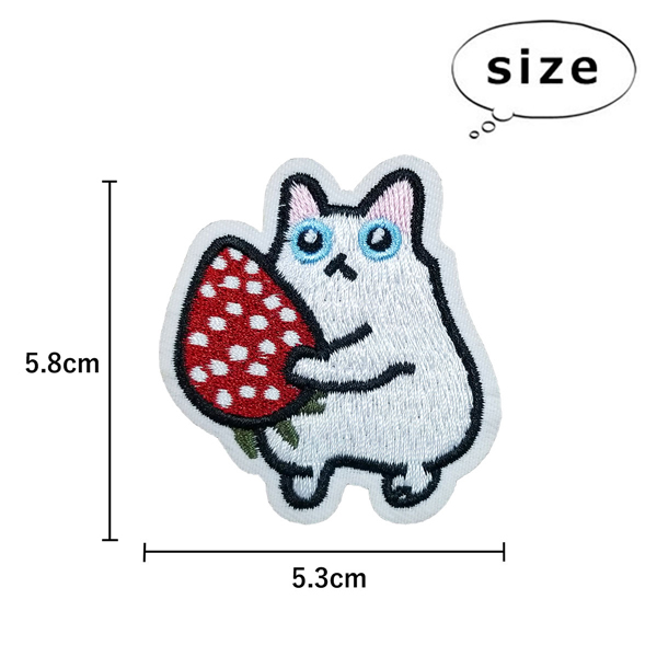 ワッペン 動物 刺繍ワッペン アイロン接着 縦5.8cm×横5.3cm ねこ ネコ cat イチゴ いちご アップリケ アイロンワッペン 手芸 母の日 プレゼント ギフト