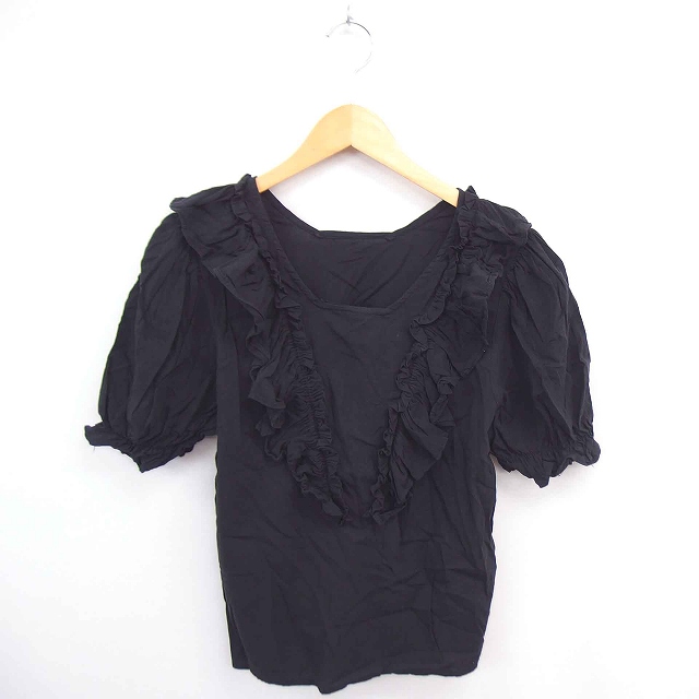 【中古】ジュノア JUNOAH カットソー スクエアネック フリル 綿 コットン 半袖 L 黒 ブラック /TT11 レディース