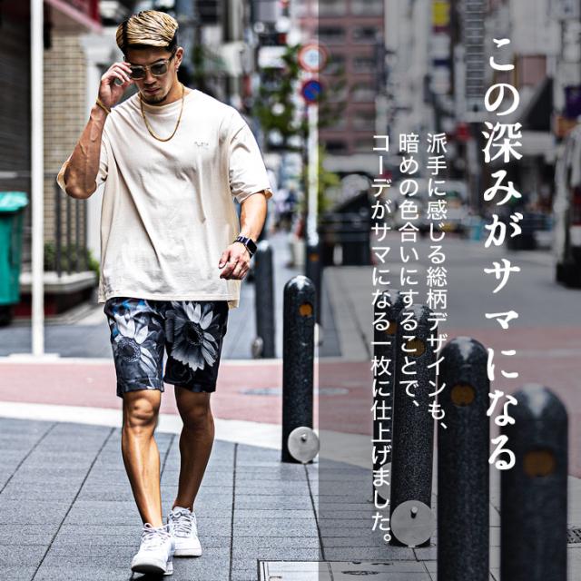 花柄デザインが季節感を漂わせる総柄ハーフパンツが登場。【魅せる遊び】遊びのあるオトコほど、人は魅力的に感じる。全体に花柄デザインを落とし込み、無地に無い遊び心を感じさせる花柄ハーフパンツ。10パターンのバリエーションで、複数枚揃えたい驚異の豊富さ。生地はサラリとした生地感で、爽やかな穿き心地を。さあ、遊び感じる魅力的な男へ。