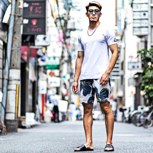 無地に無い遊び心を感じさせる花柄ハーフパンツ。
