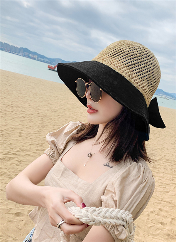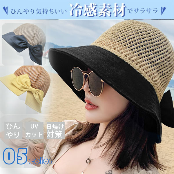 ポイント超超祭 夏帽子 つば広 レディース 配色 UVカット ビッグリボン 日よけ防止 紫外線対策 折りたたみ 小顔効果 可愛い ハット ピーチ 通気性 リボン