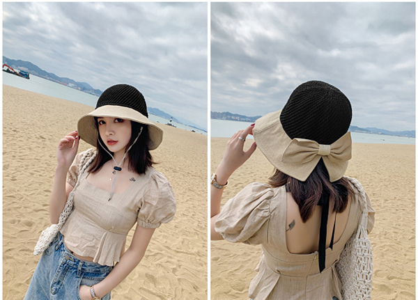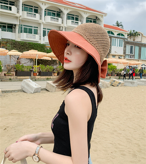 【キーワード】爆売中 夏帽子 つば広 レディース 配色 UVカット ビッグリボン 日よけ防止 紫外線対策 折りたたみ 小顔効果 可愛い ハット ピーチ 通気性 リボン