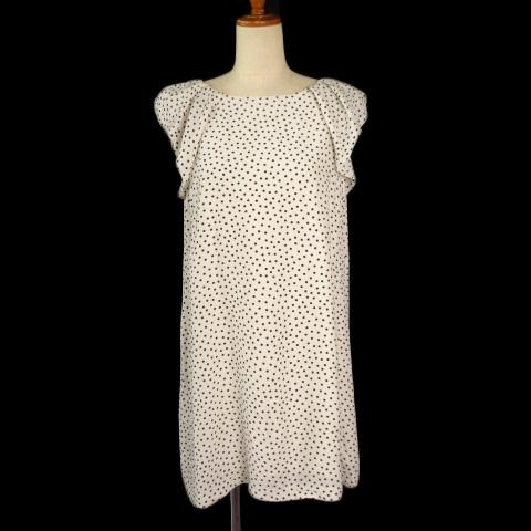 【中古】ザラ ベーシック ZARA BASIC ワンピース ドット フリルスリーブ M アイボリー 黒 ブラック レディース