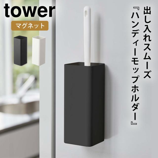 ハンディーワイパースタンド マグネット tower タワー 山崎実業 リビング 浮かせる収納 ホワイト ブラック マグネットハンディーモップホルダー タワー