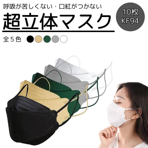 K94 マスク ホワイト ブラック グレー グリーン ベージュ 韓国デザイン 不織布 アイドルマスク 化粧崩れ防止 口紅がつかない 大人 カラーマスク 10枚セット