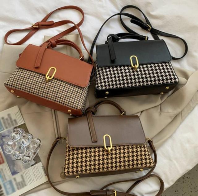 レトロな千鳥格子柄とPUレザーのかっちり感がマッチしたショルダーバッグです