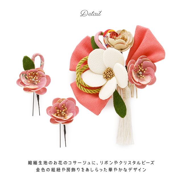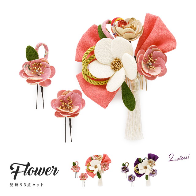 髪飾り 和装 振袖 花 成人式の髪飾り 和装髪飾り 3点セット 成人式 卒業式 袴 梅 桜 ちりめん 縮緬 ピンク 紫 房飾り 組紐 コーム Uピン 送料無料