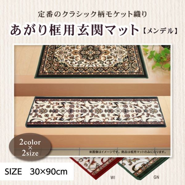 玄関マット 上がり框 上りかまち用 30×90cm モケット織 クラシック柄 メンデル 滑り止め付き