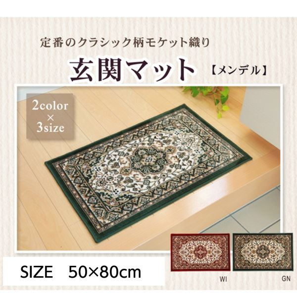 玄関マット 屋内用 小型ラグ 50×80cm モケット織 王朝柄 メンデル 滑り止め付き