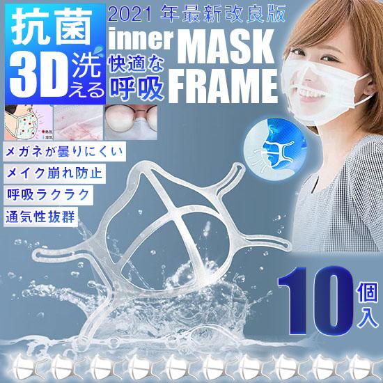 マスクフレーム 10枚入 3D 軽量 柔らかい 肌触り マスクブラケット 口元 インナーマスク ガード マスクのほね 空間 洗える メイク崩れ防止 呼吸スペース