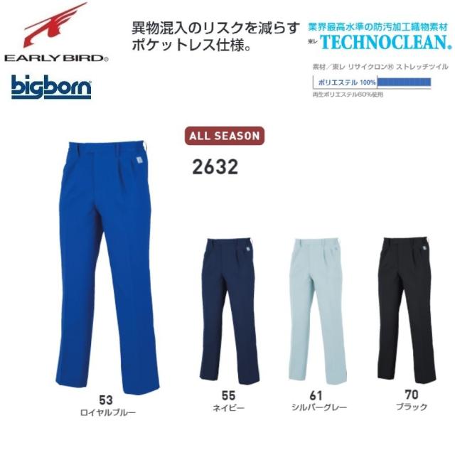 ビッグボーン 2632 ポケットレスシャーリングパンツ S〜5L EARLYBIRD(すそ直しできます)