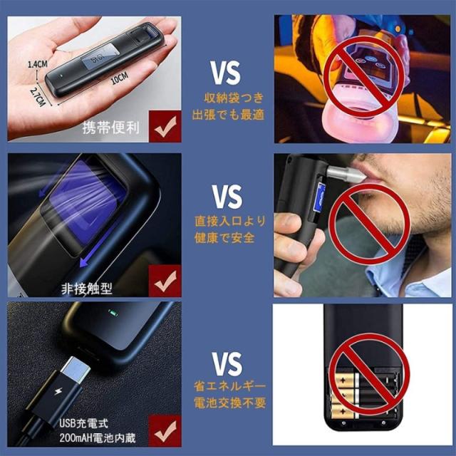 アルコールチェッカー アルコール検知器 USB充電式 飲酒検知器 LCDディスプレー アルコールテスター 業務用 検知器 測定器 検査機 アルコール濃度計