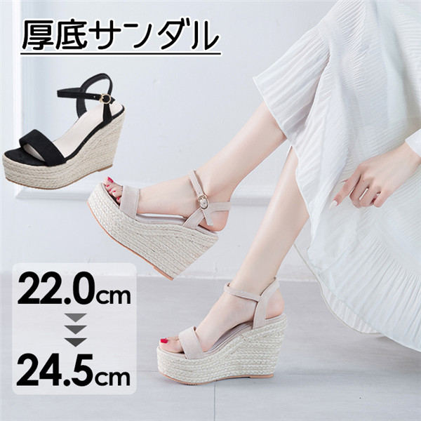 サンダル 厚底 ウエッジソール ストラップ 厚底サンダル ヒール11cm 2colors ベージュ ブラック ファッション アンクルストラップ サンダル 普段履き サマー カジュアル かわいい 夏 シューズ 22.0/22.5/23.0/23.5/24.0/24.5 di177d4d4c9