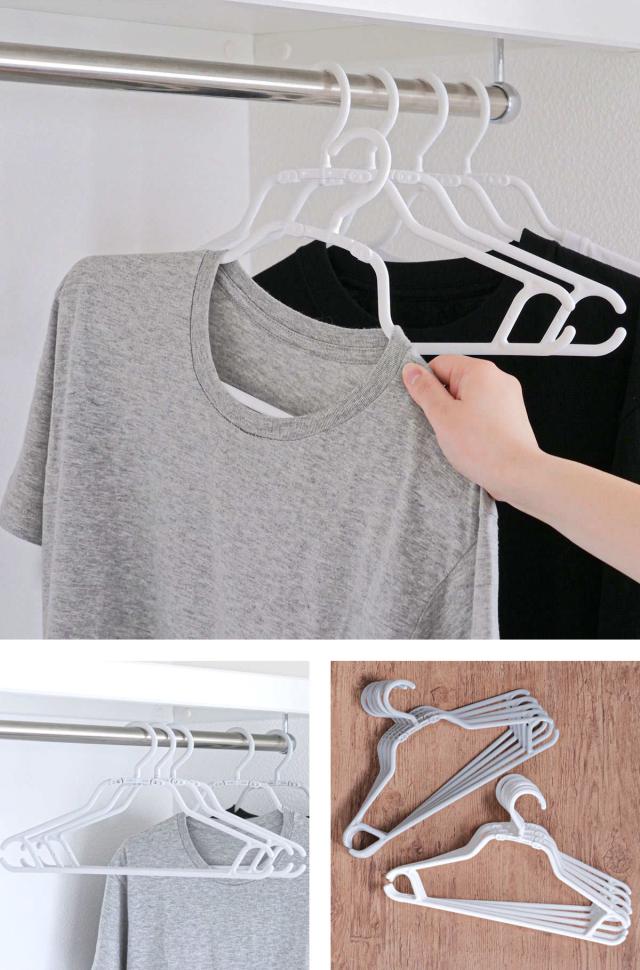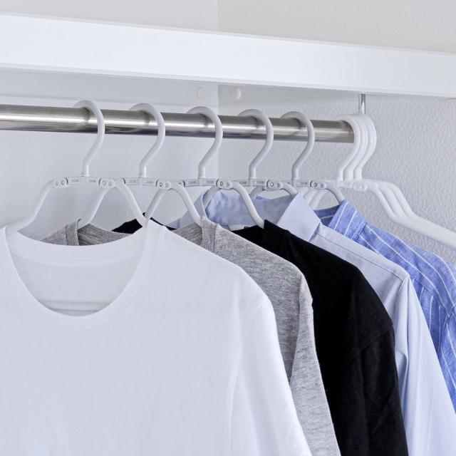 クローゼット内の衣類が引き立つシャツハンガー5本組です。シンプルなモノトーンカラーが美しく、衣類をすっきりと収納します。