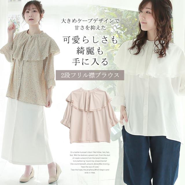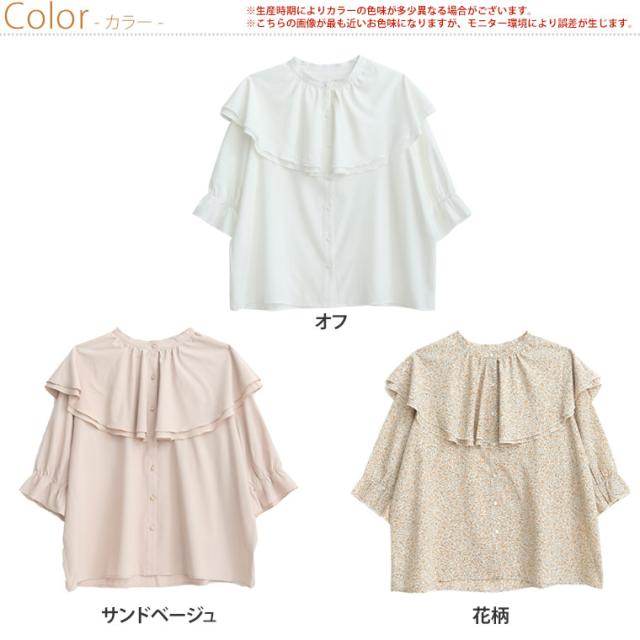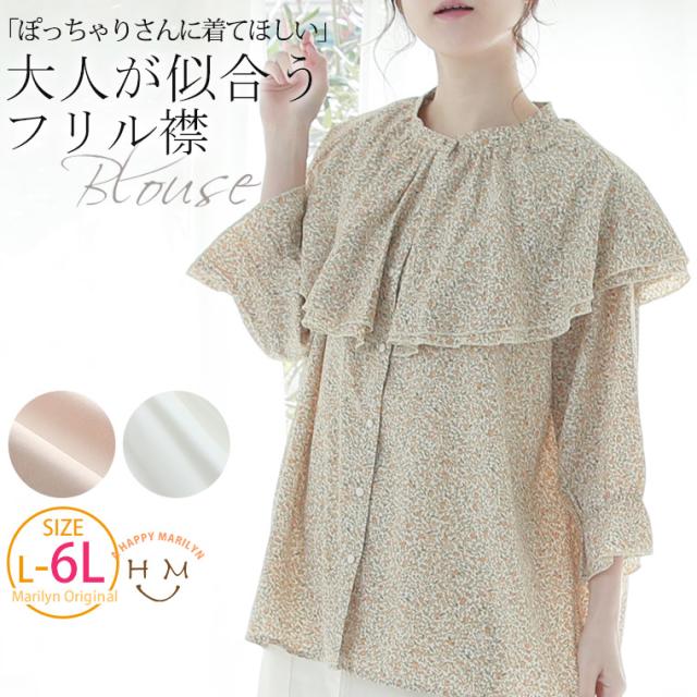 新作 大きいサイズ レディース ブラウス | オトナ可愛い 襟フリル ハーフスリーブ ブラウス [432468] LL 3L 4L 5L 6L1