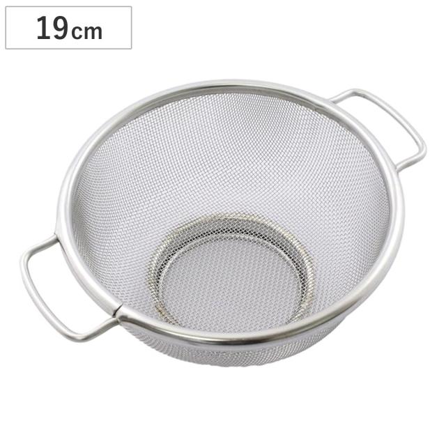 ざる 19cm リビング両手ざる ( ザル 取っ手付き 両手ザル ステンレスザル 日本製 19センチ 調理用ザル ステンレスざる 水切り 湯切り 脚付き メッシュ 下ごしらえ )