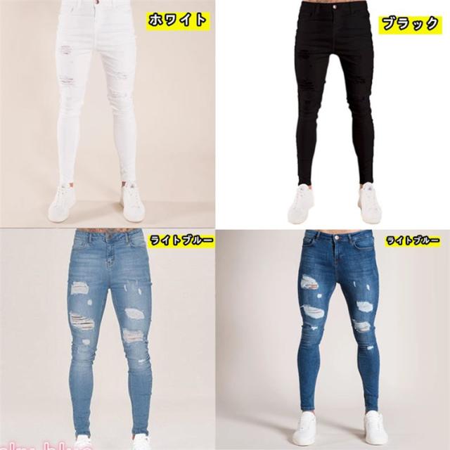 ダメージジーンズ メンズ スキニーパンツ 大きいサイズ ダメージ加工 スキニーデニム アンクルパンツ カットデニム Gパン ボトムス ジーンズ ジーパン