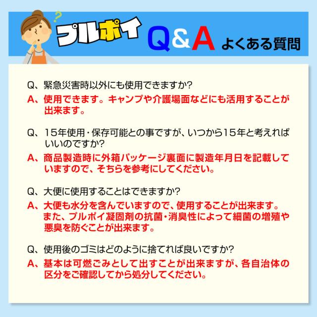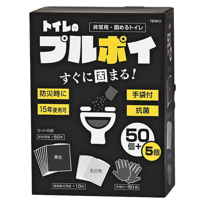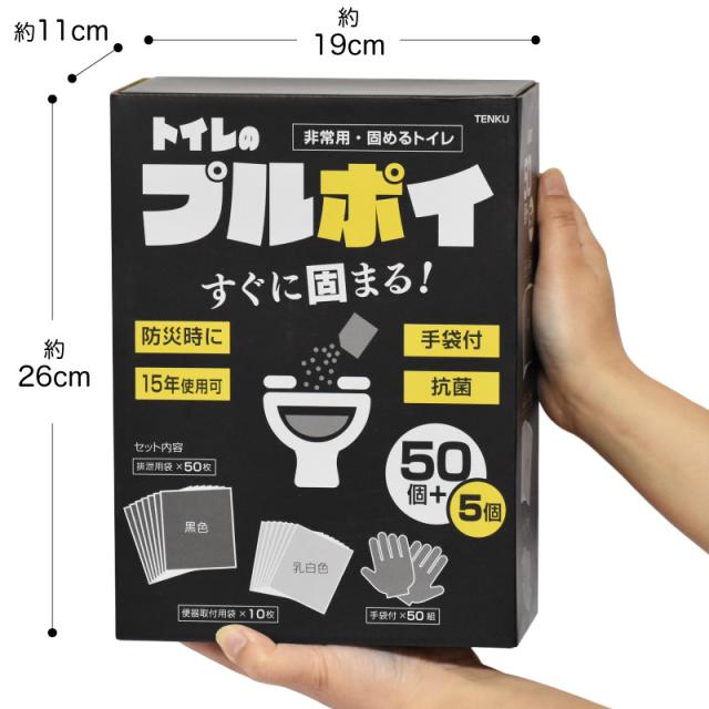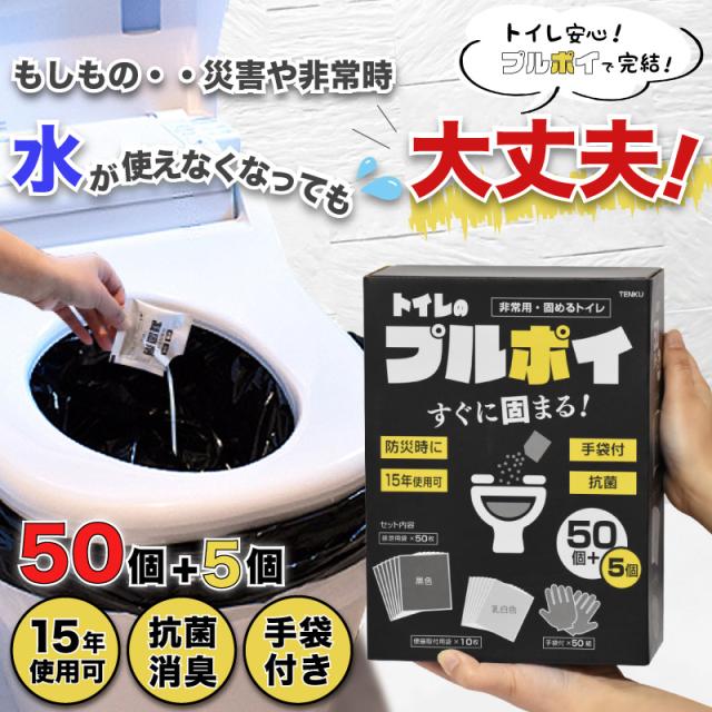 簡易トイレ 非常用トイレ [トイレのプルポイ] 携帯トイレセット 個包装 凝固剤55回分 消臭 抗菌 処理袋50枚 15年保存 防災用品 緊急用 災害 断水 アウトドア