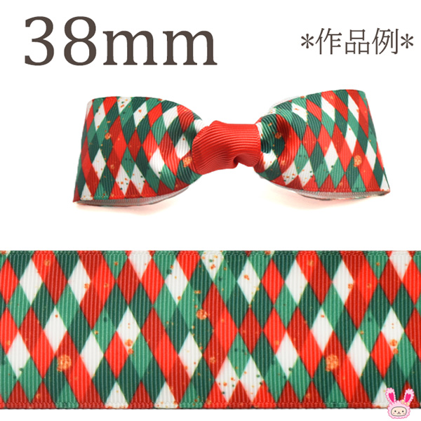 プリントリボン XMASカラーのダイヤタイル柄リボン 幅38mm 1m単位 切り売り (3m以上)