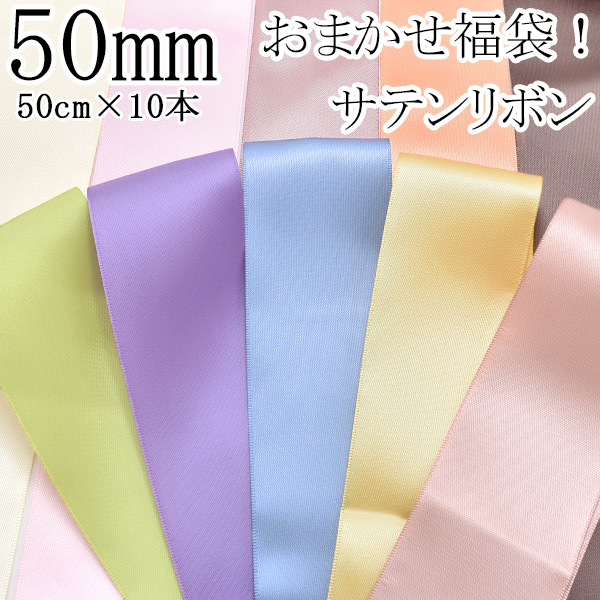 50mm 良品 サテンリボンセット アソート 福袋 50cm×10本 [在庫限り]