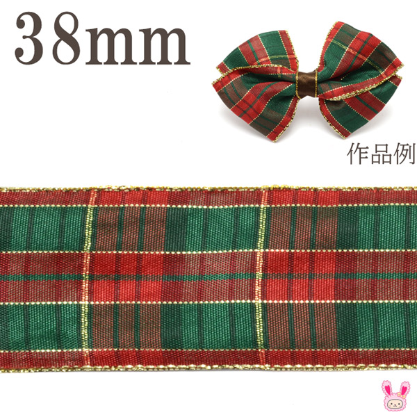 クリスマス ゴールドラインチェックリボン 幅38mm 1m単位 切り売り (2m以上)