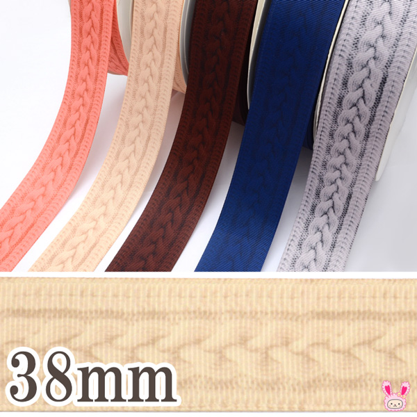 38mm プリントリボン ケーブル編みニット風リボン 2m [在庫限り]