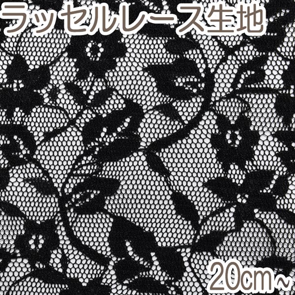 小紋工房 花柄レース 6ブラック系 10cm単位 切り売り KKF-2808-230 ラッセルレース生地 (20cm以上) [在庫限り]