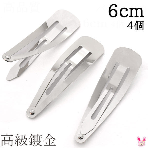 高級鍍金 パッチンどめ 6cm シルバー 韓国製 4個セット 髪留め パッチンピン ヘアピン ぱっちん [在庫限り]