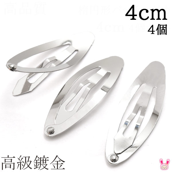高級鍍金 楕円形パッチンどめ 4cm シルバー 韓国製 4個セット 髪留め パッチンピン ヘアピン ぱっちん [在庫限り]