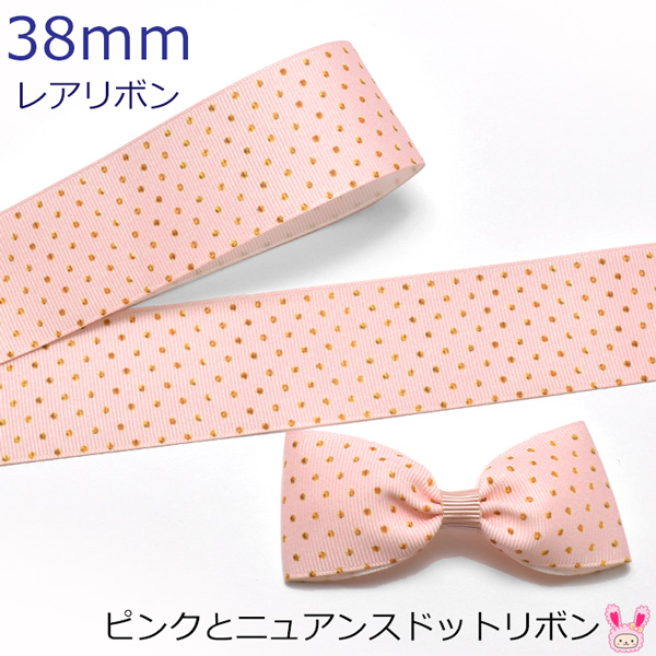 38mm プリントリボン ピンクとニュアンスドットリボン 2m [在庫限り]