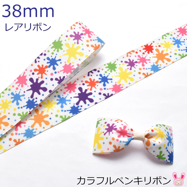 プリントリボン カラフルペンキリボン 幅38mm 1m単位 切り売り (3m以上)[在庫限り][SALE価格]