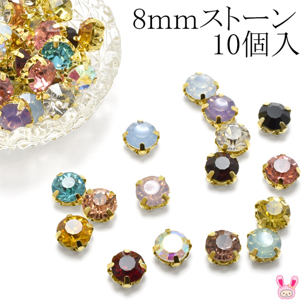 アクセサリー パーツ 台座付き 丸型8mmストーン 10個入 [在庫限り]