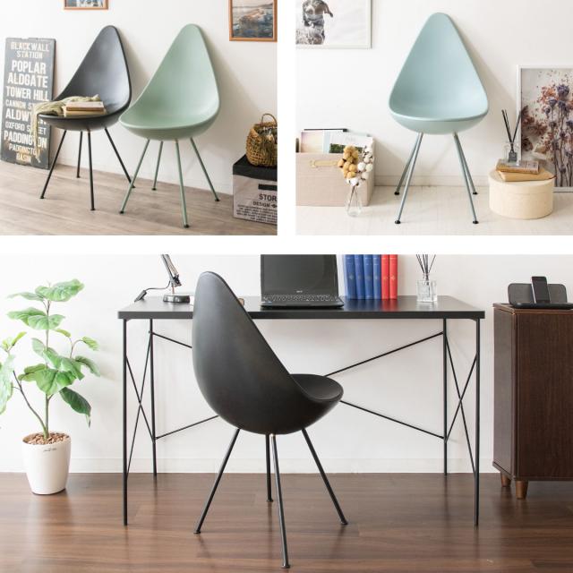 しずく型フォルムが目を引くチェアは、ダイニングチェアやデスクチェア、玄関などで腰掛けるための椅子としても活躍します。背もたれが細いデザインは圧迫感がなく、置いてあるだけでオブジェとしてもスタイリッシュな空間を演出できます。