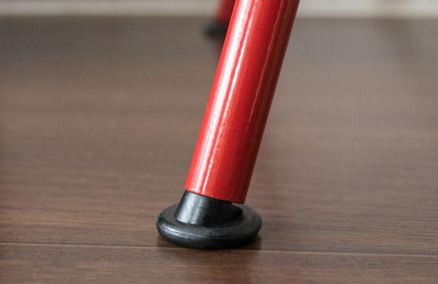 脚部の先端には樹脂キャップが付いているので、床の凹凸や傾きにも対応します。