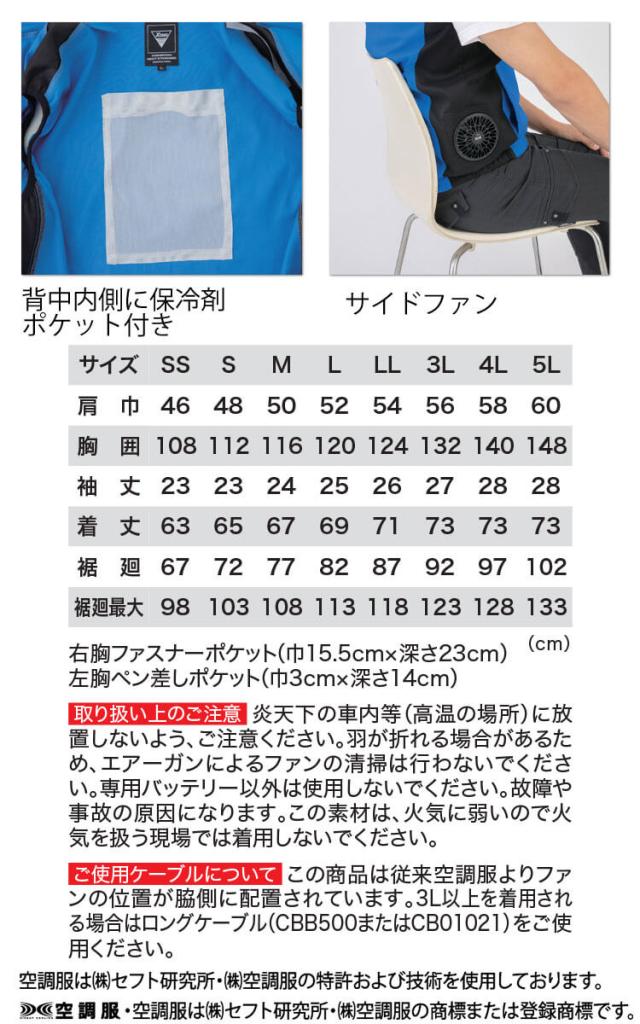空調服 ジーベック XEBEC 半袖ブルゾン(ファンなし) サイドファン XE98027 サイズSS〜LL