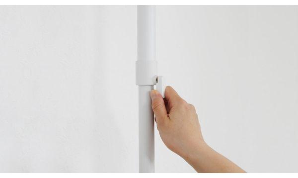 ポールは垂直に取り付け、長さ固定ねじは根元付近までしっかリ締め付けてください。ねじの締めつけが弱いと突っ張り時にねじが破損する恐れがあります。