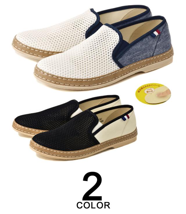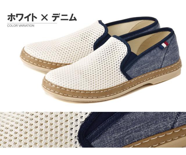 デッキシューズ メンズ サマースニーカー メッシュ編み スリッポン 夏靴【S1J】