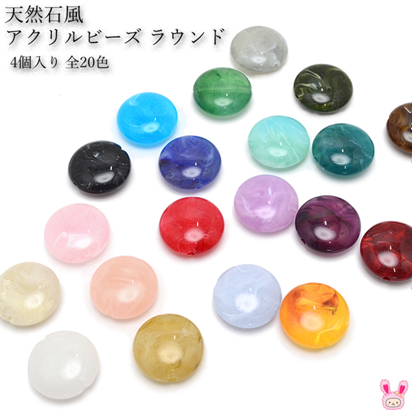 天然石風アクリルビーズ ラウンド 4個入り [在庫限り][NEW SALE価格]