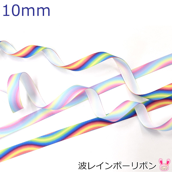 10mm プリントリボン 波レインボーリボン 2m