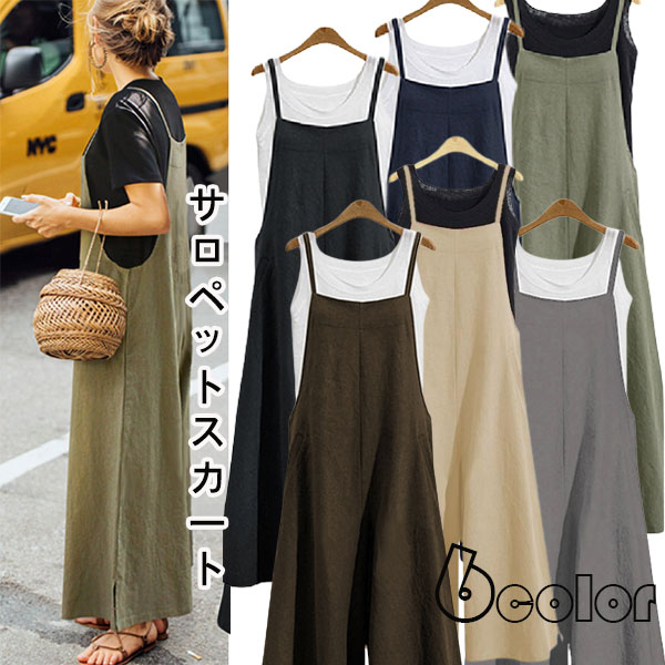 <先着10名様クーポン利用で200円OFF〜>サロペット九分丈 体型カバー カジュアル ワイトパンツ ワンピース ロング ミモレ丈 オーバーオール 無地 綿麻 きれいめ レディース 春秋 40代