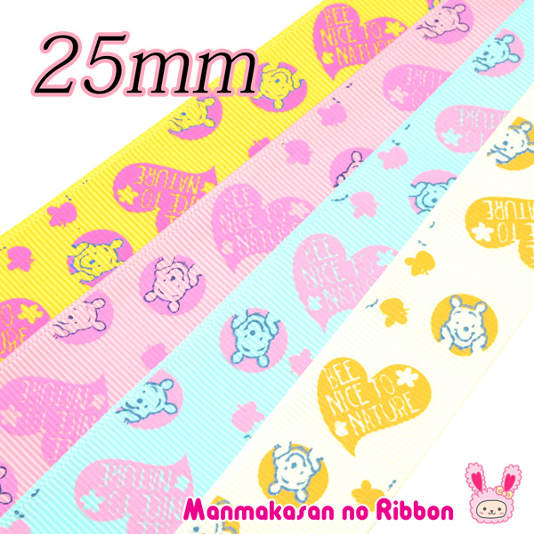 25mm プリントリボン ディズニー プーさんとハートリボン 2m [在庫限り]