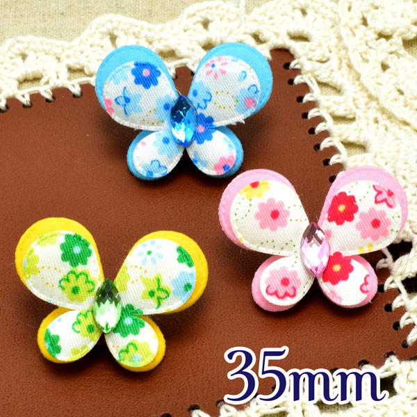 レアパーツ カラーストーン 布の蝶モチーフ 35mm 花柄 2個 [在庫限り]