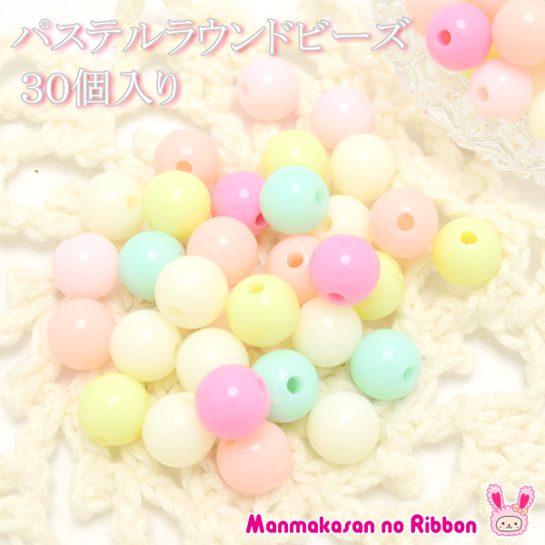 8mmサイズのパステルカラーのラウンドビーズ30個入りの商品です。