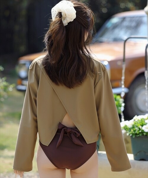レディース バックスリット入り長袖ドロップショルダーラッシュガード