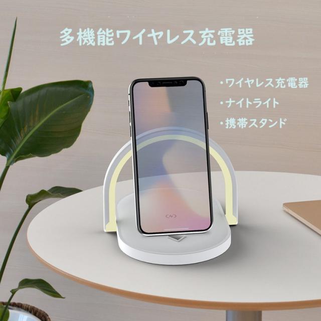 LEDナイトライト、ワイヤレス充電、携帯スタンド(調整可能)。