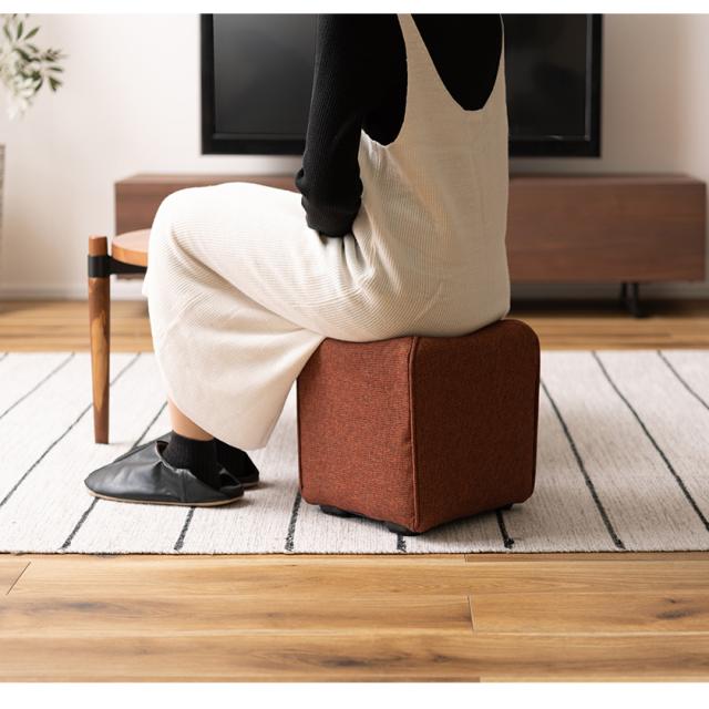 コロンと可愛い ミニスツール 送料無料 コンパクト オットマン 小さい クッション ファブリック 軽い 軽量 四角 キューブ 玄関 腰掛け