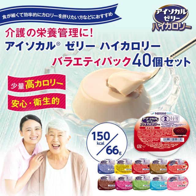 アイソカル ゼリー ハイカロリー バラエティパック 66g × 40個セット (40個×1ケース/10種×各4個)【ネスレ isocal バランス栄養 栄養 補助 健康 たんぱく質 カロリー エネルギー 介護 高齢者 アソート hc1】