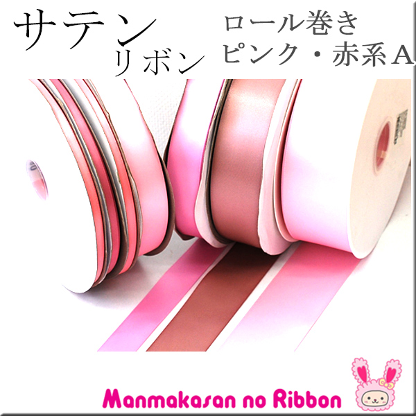 業務用 50mm 両面サテンリボン ピンク・赤系A 91m / 100Yards ロール巻き [メーカー取寄納期1か月] 【宅配便】