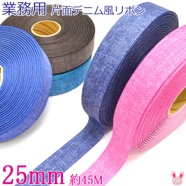 業務用 25mm プリントリボン 片面デニム風リボン 韓国製 (45mロール巻き) [在庫限り][NEW SALE価格]